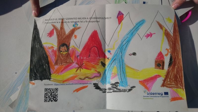 A madárgyűrűzés közben a gyerekek a „jó kirándulóhelyről” és Rákos-patak menti élményeikről rajzoltak, a felnőttek pedig asszociációs játékban való részvétellel segíthették az EcoVeloTour csapatát.