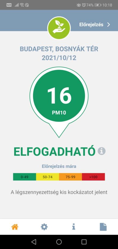 - Az applikáció hasznos tanácsokkal is segít. Például, ha jó a levegő, arra buzdít, hogy menjünk a szabadba, ha szmog van, akkor az esti-hajnali szellőztetésre figyelmeztet.