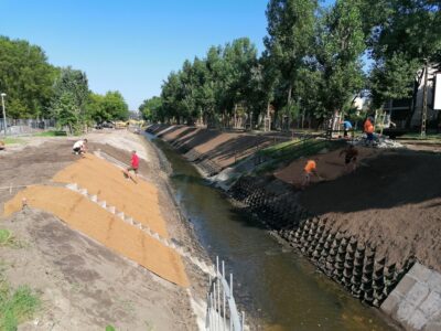 A Rákos-patak medrének munkálatai mellett tovább folytatódik a vízszakasz zuglói környezetének további megújítása is. Előkészítik az andezittel töltött RENO matracos burkolatot, valamint annak a több ezer növénynek és cserjének a helyét, amelyeket nagy gonddal ültetnek el a megújításban résztvevők. A fejlesztés eredményeként elérhető közelségbe kerül a víz, kényelmes és nagy esti sétákra, kikapcsolódásra, sportolásra hívogató hely lesz Zuglóban a Rákos-patak. A projekt tervezésénél külön gondoltak a kerékpárosokra is, akik számára a Mogyoródi úti pályánál pihenőt alakítanak ki. A futóknak pedig professzionális pályát álmodtak meg, ami akár mindennapi sportolásra is alkalmas.