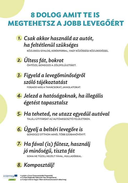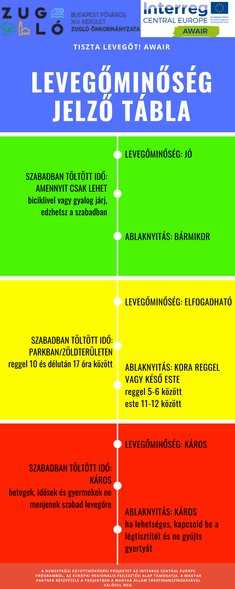 Ha pedig elrendelik a szmogriadót, akkor érdemes követni a szakértők jótanácsait: kora hajnalban vagy késő este szellőztessünk, használjunk légtisztító berendezést, kerüljük a forgalmas utakat, minél kevesebbet tartózkodjunk a szabadban. Ehhez is kaptak segítséget az óvodák. A közös terekben kihelyezett, színes levegőminőségjelző táblán követhető, hogy melyik légszennyezettségi fokozatnál mi az érvényes szakértői ajánlás.